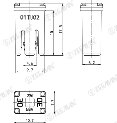產(chǎn)品詳情 FLF-NS 慢熔保險(xiǎn)絲 FLF-NS 慢熔保險(xiǎn)絲 根據(jù)使用狀況,保險(xiǎn)絲特性可能改變。 產(chǎn)品描述 額定電壓:小于直流58V 致斷容量: 1,000A@58V DC 使用溫度: -40℃~+125℃ 材質(zhì):1、銅合金2、塑膠 執(zhí)行標(biāo)準(zhǔn):JASO D612 選購 : 全系列 FLF-NS 15 FLF-NS 20 FLF-NS 25 FLF-NS 30 FLF-NS 40 FLF-NS 50 FLF-NS 60 詢價(jià) 產(chǎn)品介紹 熔斷特性 額定電流% 熔斷時(shí)間 最小 最大 110% 4 hrs --- 135% 60 s 1800 s 200% 2 s 60 s 350% 0.2 s 7 s 600% 0.04 s 1 s 保險(xiǎn)絲目錄 零部件編號(hào) 額定電流(A) 外殼顏色 FLF-NS 15 15 A 灰色 FLF-NS 20 20 A 淺藍(lán) FLF-NS 25 25 A 白色 FLF-NS 30 30 A 粉紅 FLF-NS 40 40 A 綠色 FLF-NS 50 50 A 紅色 FLF-NS 60 60 A 黃色